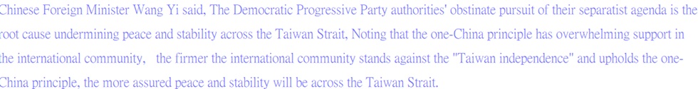 Daily Sabah, 2026-2-14 China FM: "instigating and plotting to split China through Taiwan, crossing China's red line" could very likely lead to a confrontation between China and the United States.