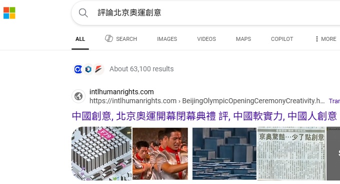 Moreover, other Taiwan's newspapers critics comments include "vanity", "inferiority complex", "flattering", "adulation", "slavishness", "falsification", "human-manipulator", "scare to loss their head for standing the ground " etc. ( please click to read Chinese version article - comments on Olympic ceremony )