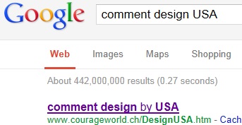 | ● no.1 "comment design USA" on google at Dec. 4, 2012. Total number of search result is 442,000,000. |