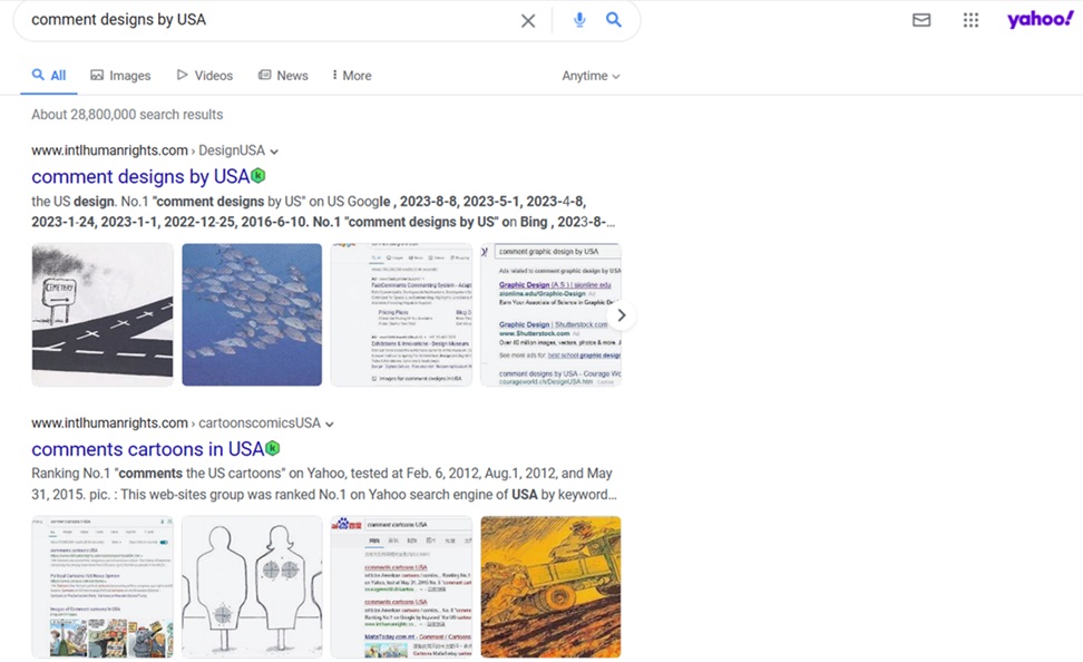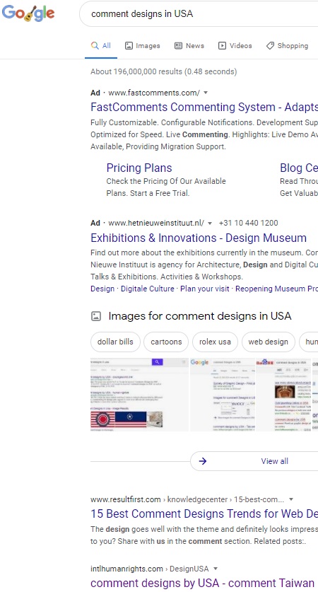 No.1 "comments designs by USA" on US Google , 2024-1-1, 2023-11-11, No.2 at 2024-8-8