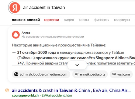 No.1 "Aviation safety in Taiwan" on Yandex, 2026-1-10 (Chinese version);