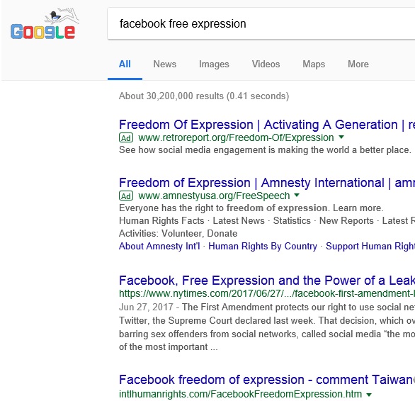 Facebook free expression ranks No.1 on Google |