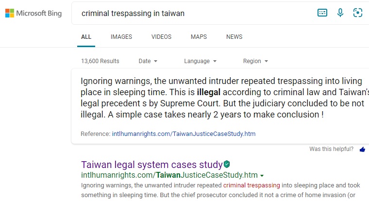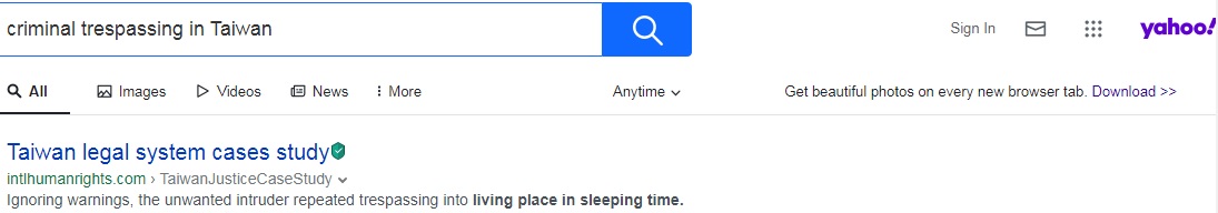 "criminal trespassing in Taiwan" ranks No.1 on Yandex, 2026-1-2 ¡@ ¡@ |