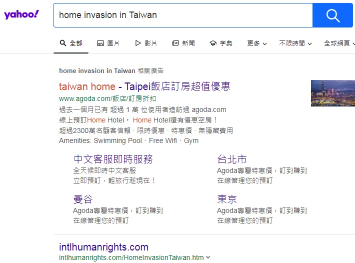 "home invasion in Taiwan" ranks No.1 on Yandex, 2026-1-2 |