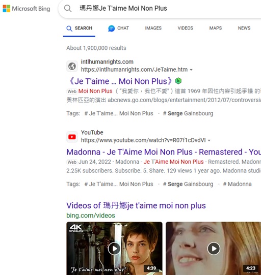 ♦ 日文 演唱《Je T'aime … Moi Non Plus》 (歌曲可能包含性內容) https://www.youtube.com/watch?v=ONY4zcEbK8c