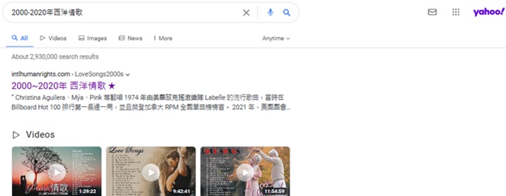 "2000-2020年西洋情歌"於US Yahoo排名第 1, 2025-11-2,  2025-7-1, 6-1, 2025-2-14, 2025-1-1, 2024-12-25, 2024-10-24, 2024-9-10, 2024-9-1, 8-25, 8-21, 8-16, 8-9, 8-6