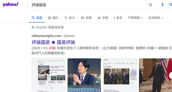 本網站群"評論國是 " 排名Yahoo Taiwan  第一, 2026-1-11