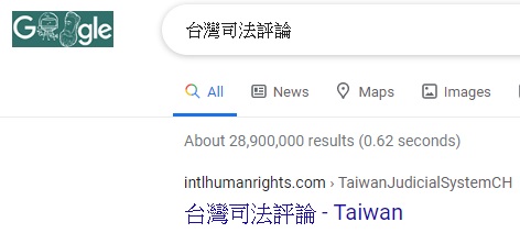 pic.: 本網站群 "台灣司法評論" 排名Google 第一, 11-11-2020, 8-19-2020