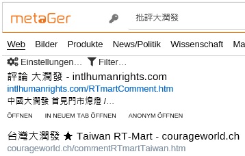 pic. : 本網站群 "批評 大潤發" 排名 歐洲MetaGER.de 第1, 2-5-2020