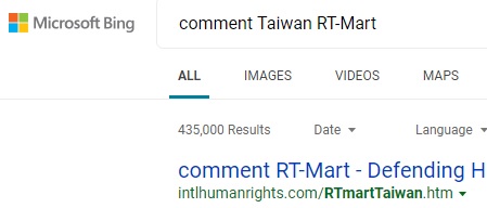 pic. left: No.1 comment Taiwan RT-Mart on Bing, 2021-10-7, 2021-9-22, 2021-8-19, 2021-7-27, 1-23-2021, 11-27-2020, among top ranks at 2022-2-7 ; pic. right: No.1 comment RT-Mart Taiwan on US Yahoo , 2022-2-7, 2021-10-7, 2021-9-22, 2021-8-19, 2021-7-27, 1-23-2021, 11-27-2020