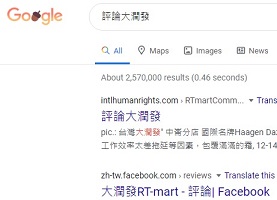 pic.: No.1 "comment RT-mart Taiwan" on Google, 2022-2-7, 2021-10-7, 2021-9-22, 2021-8-19, "comment Taiwan RT-Mart" on Google, 2021-10-7, 2021-9-22, 2021-7-27, 1-24-2021, 12-22-2020