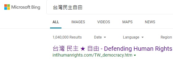 No.1 "Taiwan democracy"(¥xÆW¥Á¥D)  on Bing, 7-12-2020