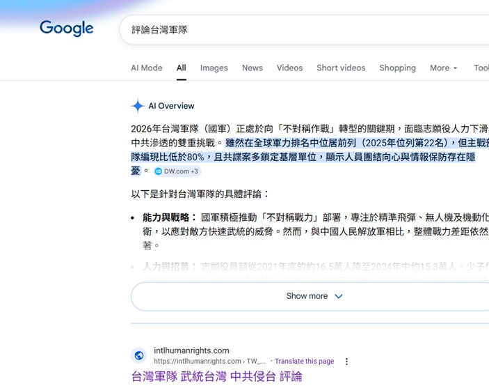 ★★★★ 武統台灣 ★ the Lowy Institute ('23): 台灣軍力排名亞洲第11 ★★★ 本網站 世界排名 No.1 : 2020~26, 2017~19, 2016, 2015, 2014, 2013, 2010~12 ★ Top since 1998 ★