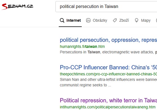 No.1 "political persecution in Taiwan" on Yandex