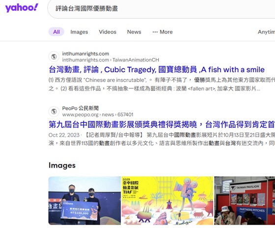 台灣國際優勝動畫" 排名Bing, Yahoo第1, 2026-1-19