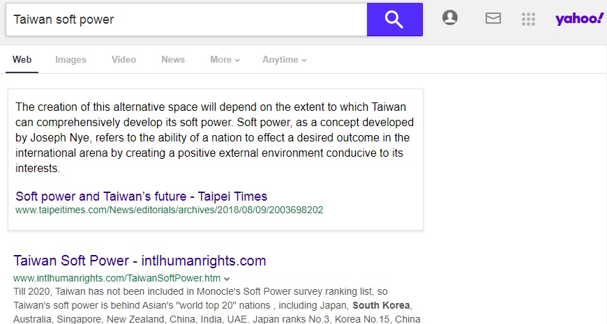 | ( ps: "Hard Power" means military power, etc ― Taiwan has not invented any top weapons. ) | |