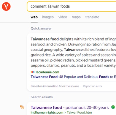 language intro. to Taiwan cuisines