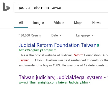 | Liberty Times ( head page 12-8-2018) | Taiwan P.M. (賴清德): Taiwan has not made significant progress on judicial reform, which is roiling with public discontent. |