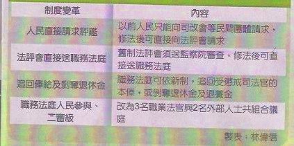 | United Daily News, 2-13-2018 | Taiwan's Minister of Judiciary and secretary of Justice Ministry issued progress report of judicial reform ― Public trust in judges is always low, the protection mechanism of lawsuit right is still not good enough ( |