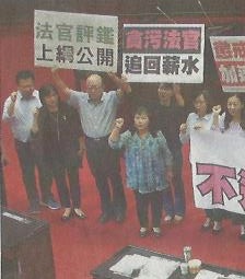 The Liberty Times, head-page news, 7-9-2019, The China Times, 7-9-2019: According to a survey by the Judiciary Yuan (gov.), 66.2% Taiwanese are not satisfied with the effect and outcome of judicial reform (22% of them are extremely not satisfied), 56% Taiwanese do not trust the judges ...