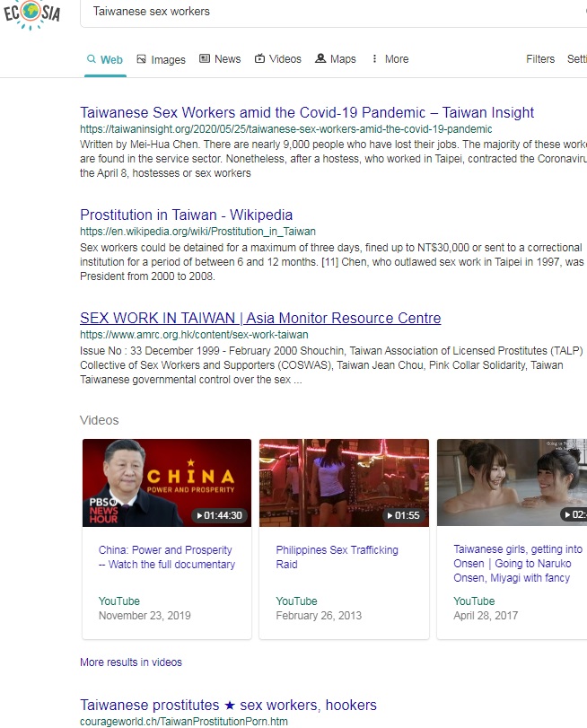"Taiwan sex workers" on Ecosia of Germany, 2021-4-24