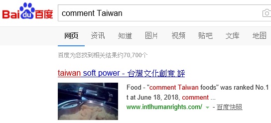 pic.: "評論台灣夜市"排名Baidu of China  第1, 3-9-2018