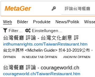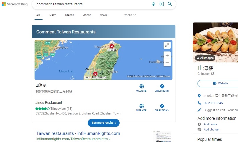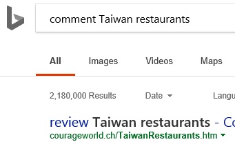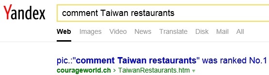 pic.:"評論台灣餐廳"(英文) 排名Baidu of China 第1,