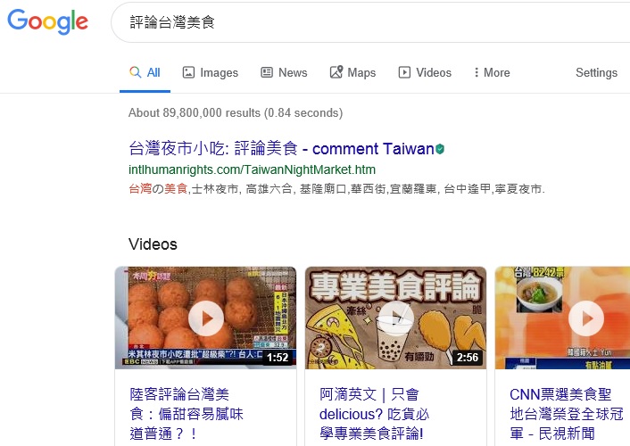 "評論台灣美食"排名Yahoo  第1, 10-15-2018, 9-3-2018  (英文版)