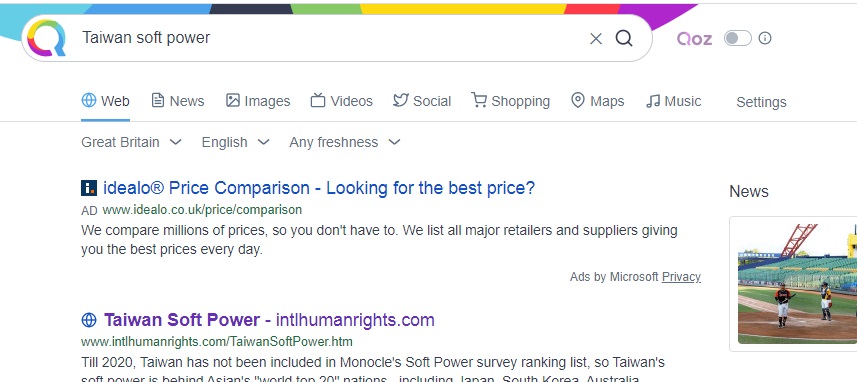 speaking, Taiwan's soft power is behind Asian's "world top 20" nations