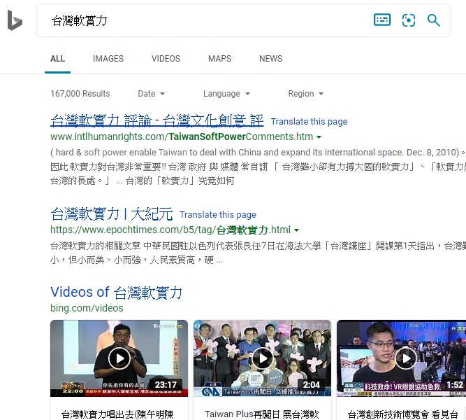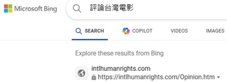 "評論 台灣軟實力"排名Bing第 1, 2026-1-9,  2025-2-9, 2024-12-7, 2024-8-6, 2024-4-23, 2024-2-9, 2023-11-18