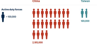 | ◆ RFI, AFP (France), 2025-2-23 | In reality, Taiwan would be massively outgunned in terms of troop numbers and firepower in any war with China. |