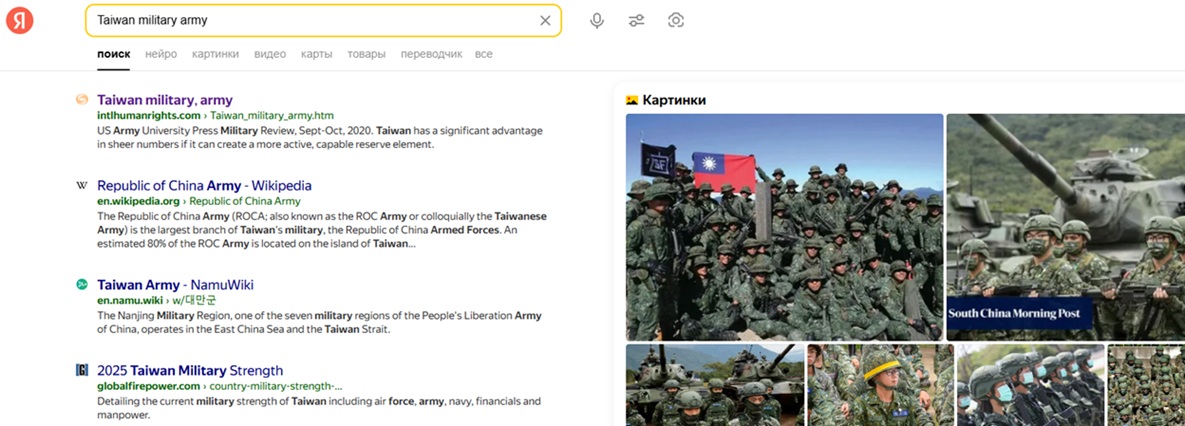 pic.: No.1 "Taiwan military army" on Yandex Russia, 2025-6-5, 2025-5-1, 2025-4-13, 2025-2-22