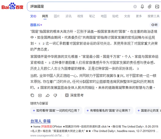 pic. : 本網站群"評論國是" 排名 Baidu第1, 2026-3-7