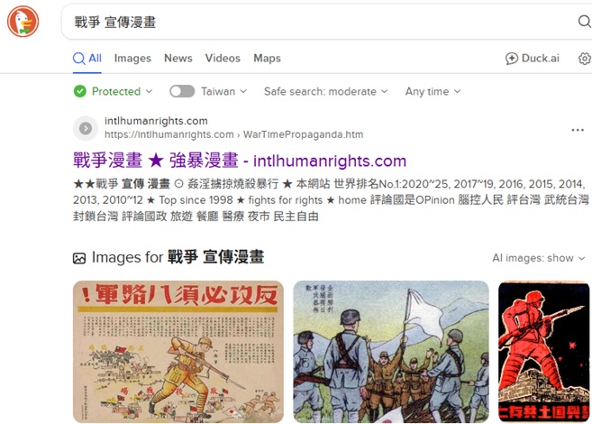 "戰爭強暴漫畫" 排名美國Duckduckgo第1, 2025-10-21, 2025-9-24, 9-21