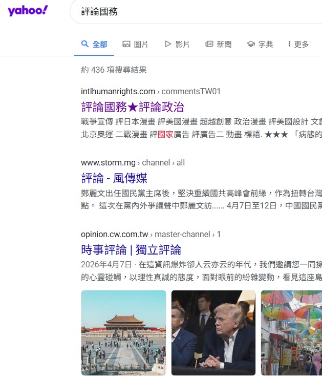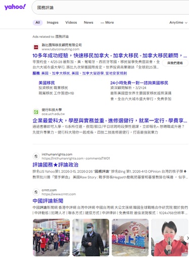"評論國務" 排名Yahoo 第1, 2026-4-14, 2026-3-27, 2026-3-15
