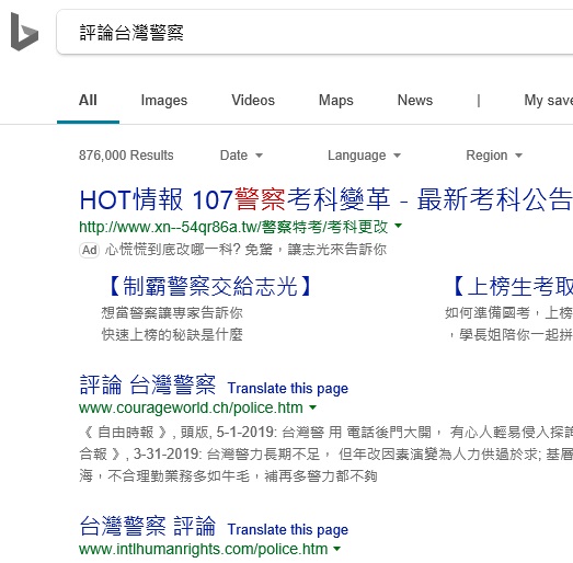 pic. : 本網站群 "評論台灣警察" 排名Bing第1,  2025-12-23, 2025-12-5, 2025-8-4, 2025-5-24, 2025-4-12, 2025-1-30, 2025-1-8, 2024-12-24, 2024-9-22, 2024-7-4, 2024-5-12, 2024-2-1, 2024-1-8, 2023-11-11, 2023-11-1, 2023-7-9, 2023-6-21, 2023-5-7, 2023-4-26, 2023-4-6, 2023-3-11, 2023-2-6, 2022-11-7, 2022-10-1, 2022-9-6, 2022-7-3, 2022-6-16, 2022-4-1, 2022-1-28, 2021-11-23, 2021-8-8, 2021-6-14, 2021-5-2, 2021-4-18, 3-24-2021, 1-8-2021, 12-2-2020, 11-11-2020, 9-24-2019