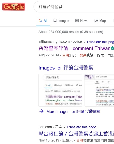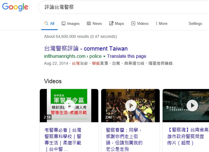 評論台灣警察" 排名Google Taiwan, Google Japan 2, 2025-5-24, 2025-4-12; No.1 at 2024-2-1, 2024-1-8, 2023-11-11, 2023-11-1, 2023-9-30, 2023-7-8, 2023-6-21, 2023-5-4, 2023-4-26, 2023-4-6,
