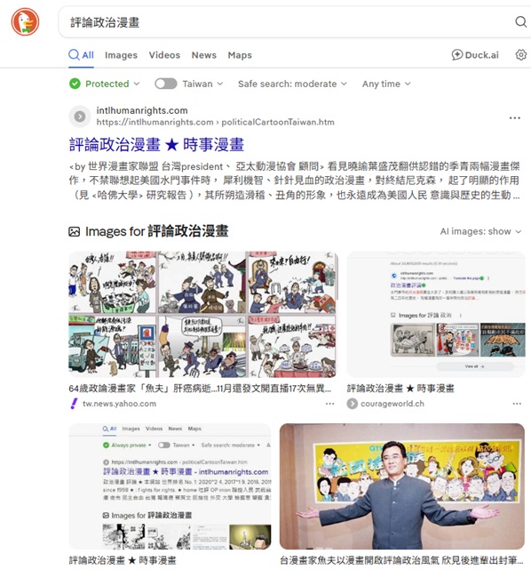評論政治漫畫" 排名Duckduckgo第1, 2026-1-19, 2025-2-5, 2024-8-8