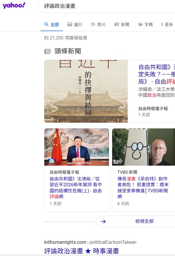 評論政治漫畫" 排名Yahoo Taiwan第1, 2026-1-19, 2025-2-5, 2024-8-8,