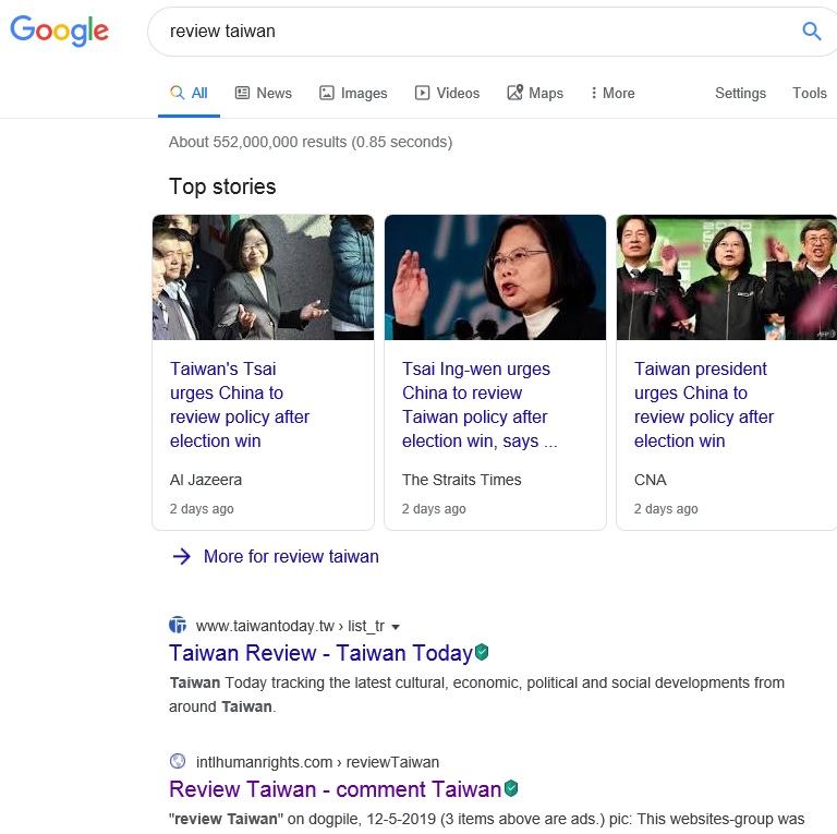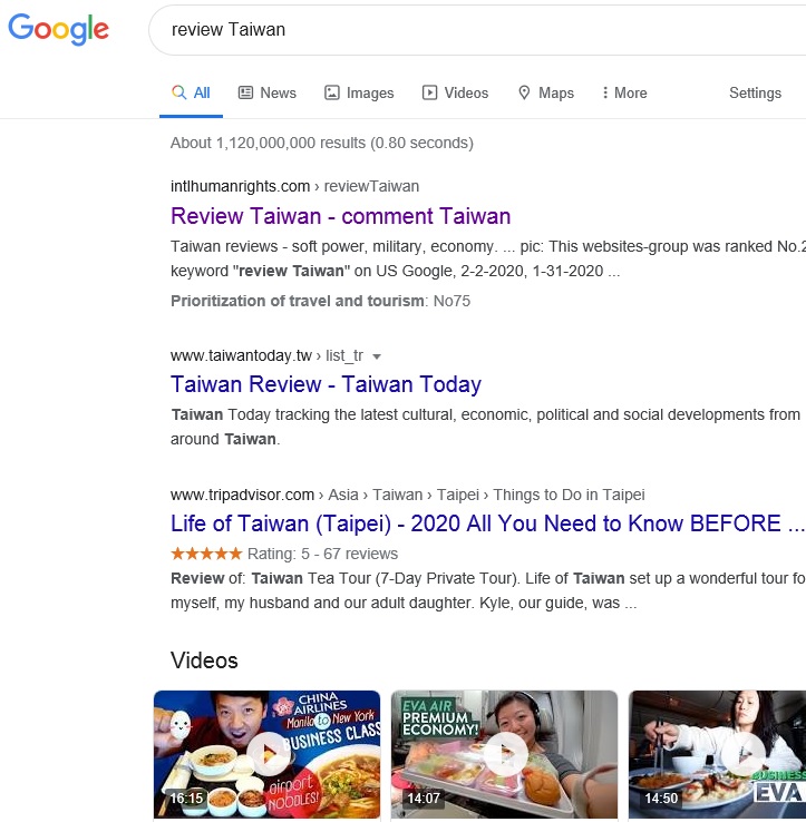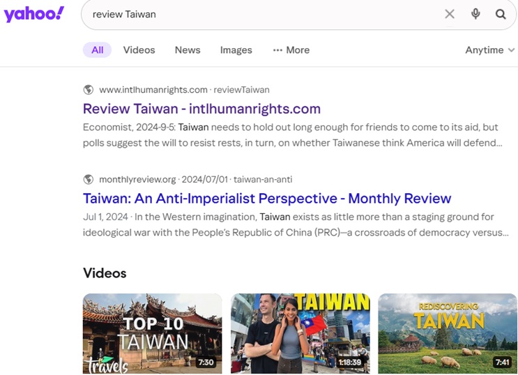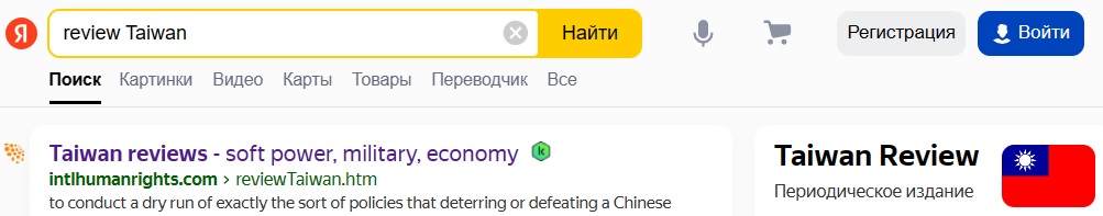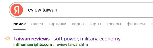 "review Taiwan" on Yandex,