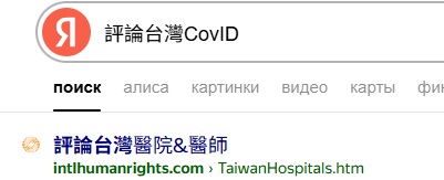 The website group ranks No.1 "comment Taiwan CovID" on Yandex, 2026-1-21