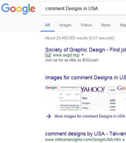 | ● no.1 "comment design USA" on google at Dec. 4, 2012. Total number of search result is 442,000,000. |