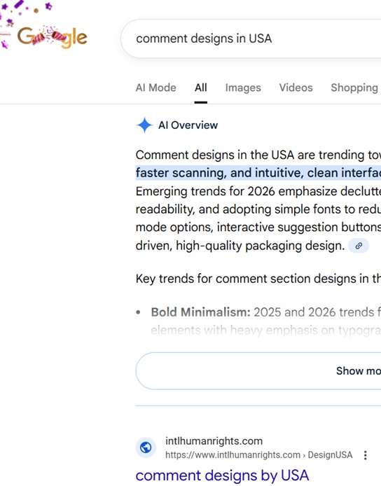 ● No.1 "comment designs in USA" on US Google, 2026-1-1