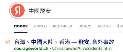 No.1 "Aviation safety in Taiwan" on Yandex, 2026-1-10 (Chinese version);
