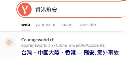 No.1 "Aviation safety in Hong Kong" on Yandex, 2026-1-10 (Chinese