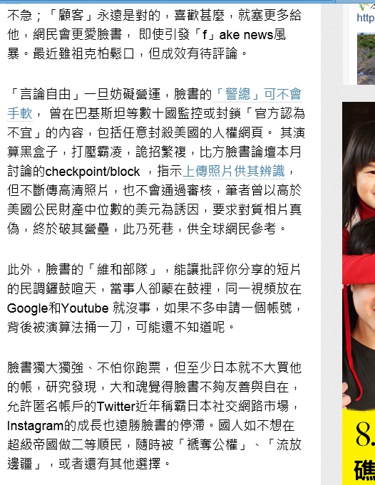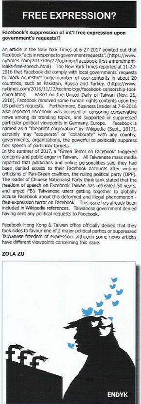 National Taiwan Univ. professor in Apple Daily of Taiwan at 10-6-2017 said Facebook