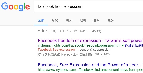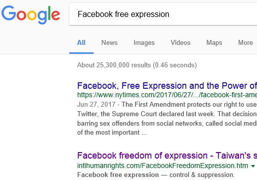 Facebook free expression ranks No.1 on Google |