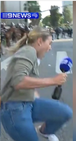 pic.: RpsAgainstTrumpX 影音 CNN 附屬澳洲9NEWS記者Lauren Tomasi遭警方橡膠子彈擊中受傷後驚恐痛呼。