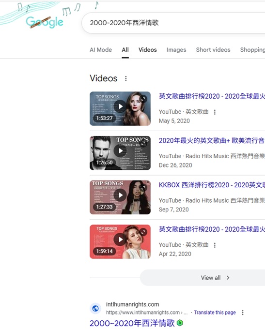 "2000-2020年西洋情歌"  US Google 排名1, 2025-11-2