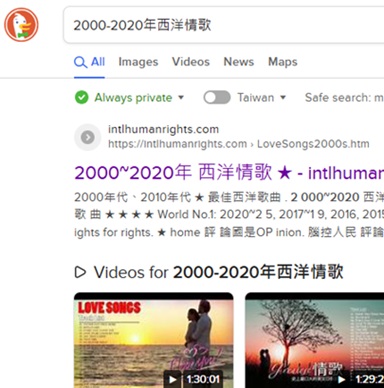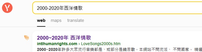 "2000-2020年西洋情歌"排名美國Duckduckgo第 1, 2025-11-1, 2025-2-14